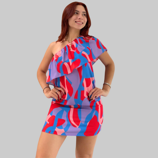 Blue & Red Mini Dress