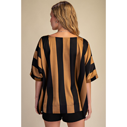 Black & Taupe Satin Blouse