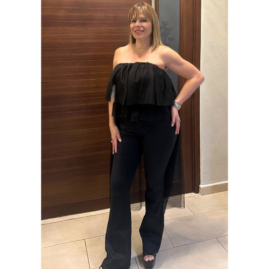 Black High Low Tulle Top