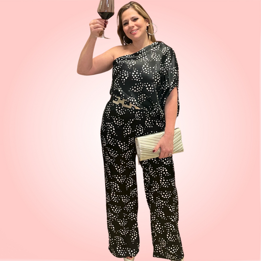 One Shoulder Satin Jumpsuit