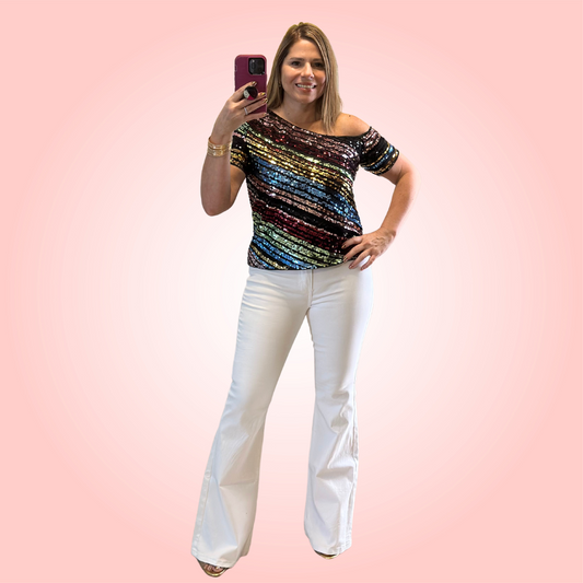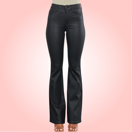 Vibrant Leather Flare Jeans