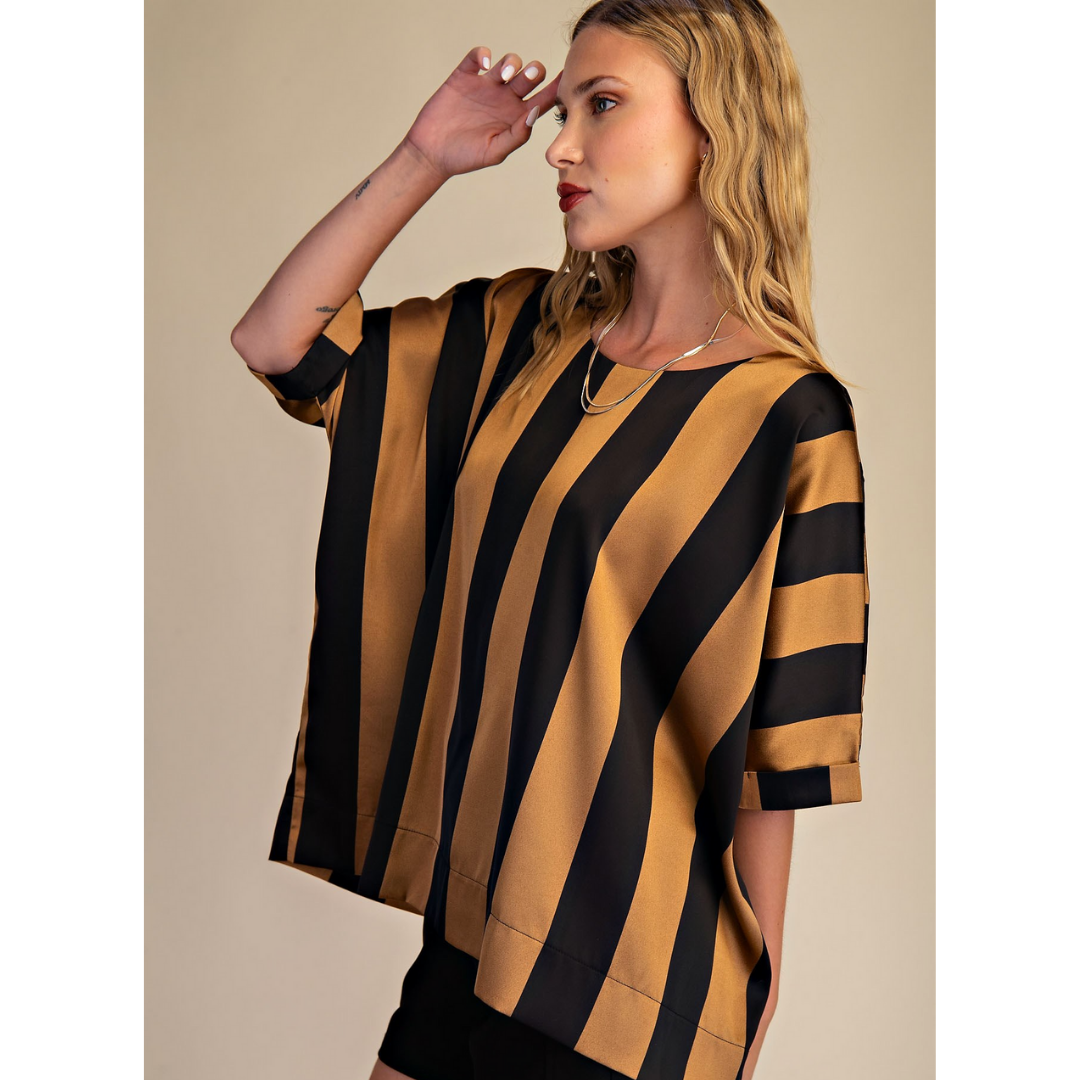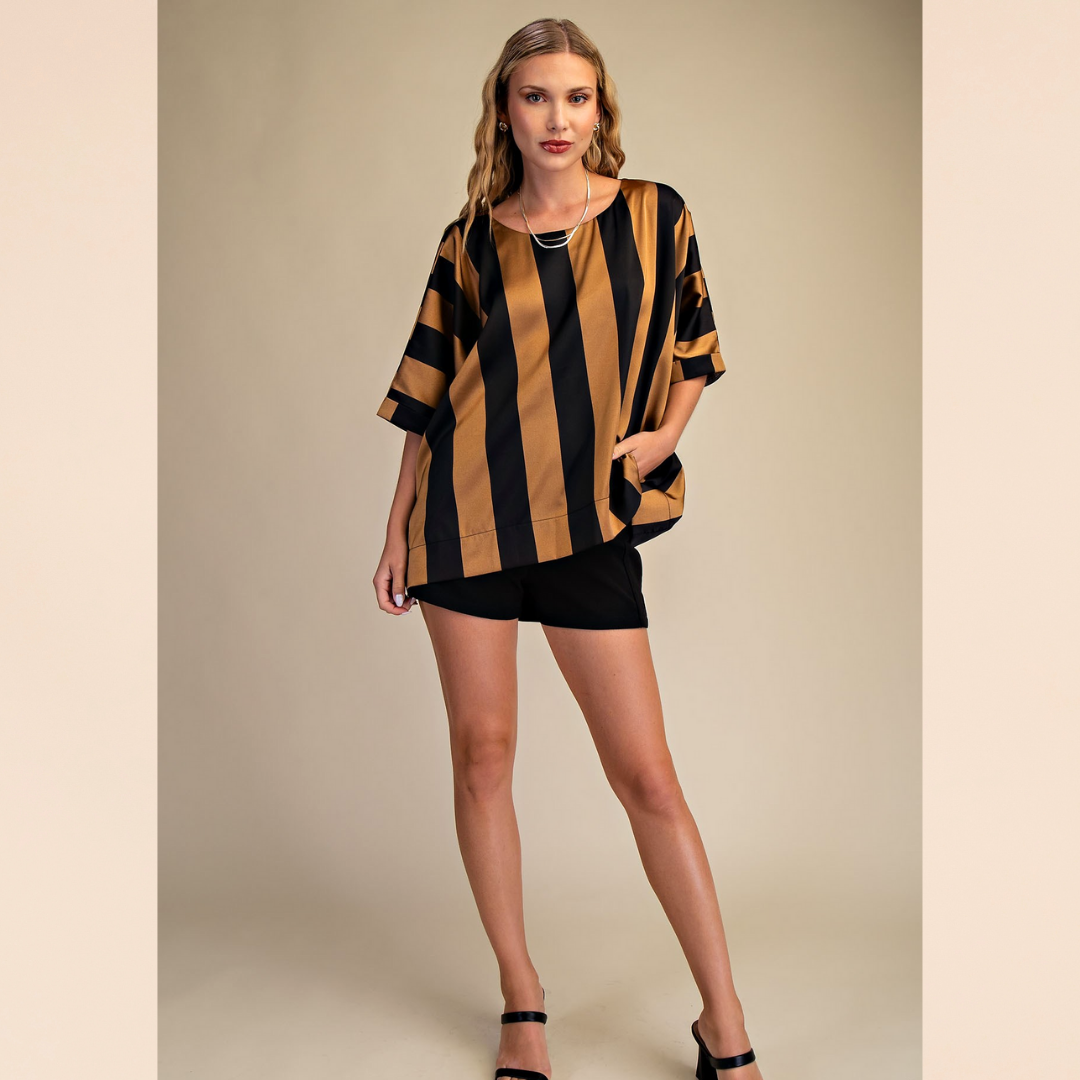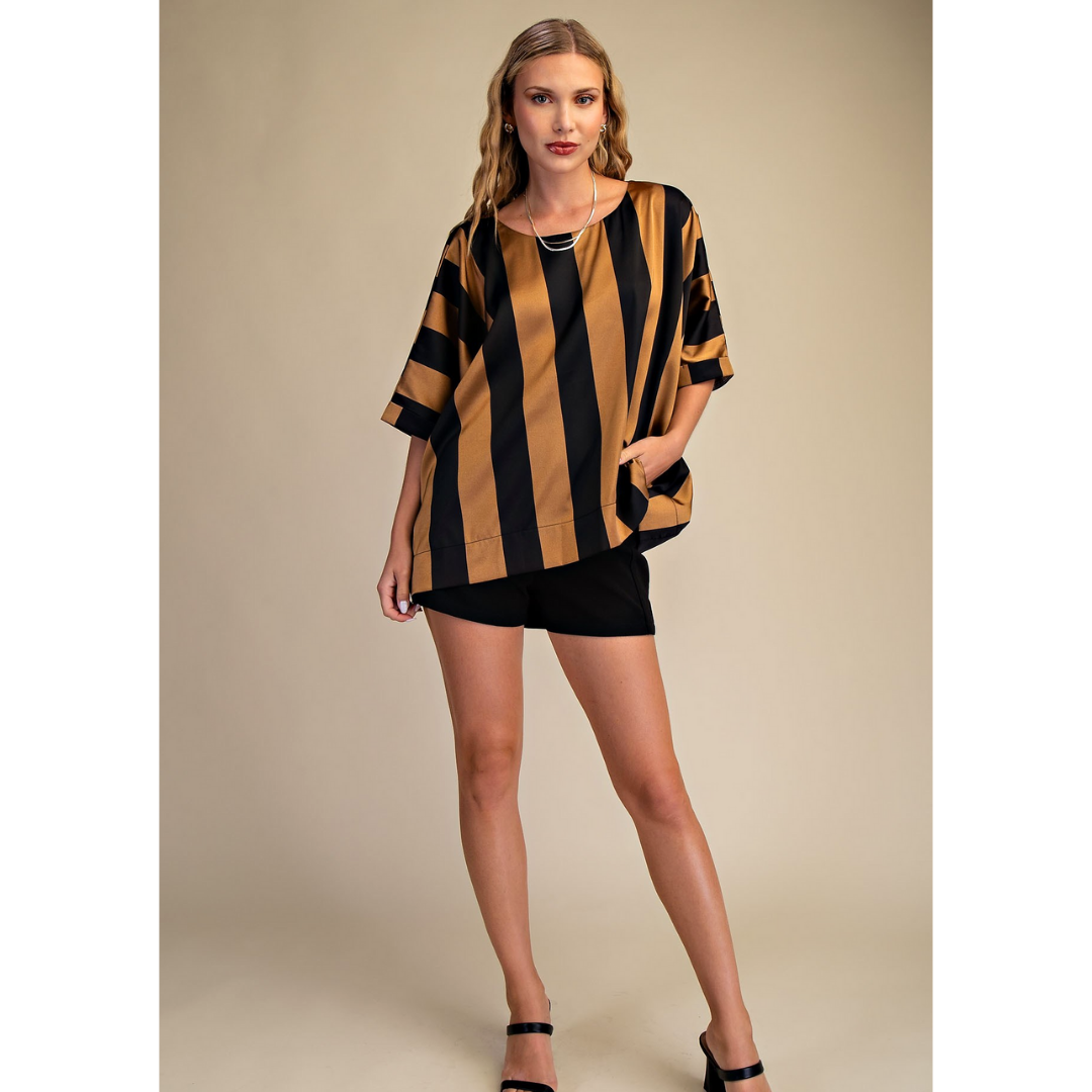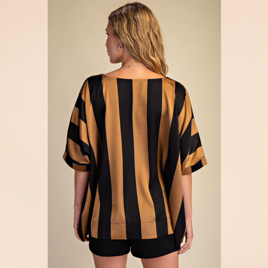 Black & Taupe Satin Blouse